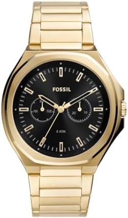 Brand Name Fossil Model number BQ2611-AMZUK Part Number BQ2611-AMZUK Item Shape Round Clasp Deployment Clasp Case diameter 45 millimetres Case Thickness 11 millimetres Band Material Stainless Steel Band width 16 millimetres Band Color Gold Dial color Black Item weight 160 g Movement Quartz Display Type analogue