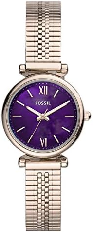 Brand Name Fossil Model number FES4694 Part Number FES4694 Item Shape Round Clasp Tang Buckle Case diameter 28 millimetres Band width 12 millimetres Band Color Silver Dial color Purple Display Type Analogue