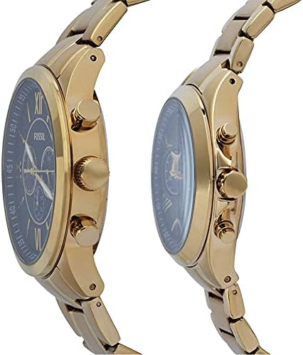 36MM case, 16mm band width, mineral crystal, Quartz movement with chronograph analog display -- Round gold-tone stainless steel case, with a black dial -- Gold-tone, stainless steel bracelet -- Water resistant up to 50m: Wearable while swimming in shallow water -- Packed in a Fossil gift box