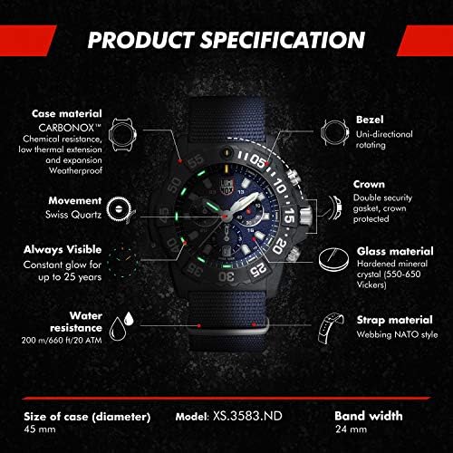 Specifications of Luminox Navy Seal, Military Dive Watch XS.3583.ND, 45 MM.