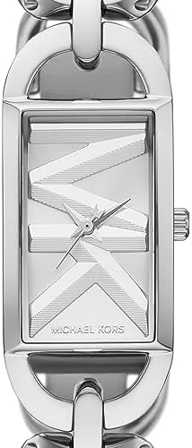Michael Kors Watch from the MK Empire collection for women. 3 ball quartz movement, made of stainless steel with a rectangular case with a polished silver finish. The dial is silver. Case diameter: 30 mm. Case Thickness: 8mm Lug spacing: 4 mm. The strap is made of stainless steel with a polished finish. Strap colour: silver. Band Type:Chain Closure: bracelet with removable links. The water resistance is 5 ATM. Reference is: MK7407