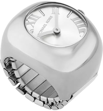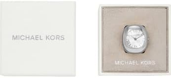 Michael Kors' 24mm Rylee watch ring features a silver sunray dial, two-hand movement and stainless steel band. 24mm case, 10mm band width, mineral crystal, Quartz movement with 2-hand analog display, imported. Round stainless steel case, with a silver dial. Silver, stainless steel band. Water resistant up to 50m: Wearable while swimming in shallow water.