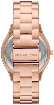 Michael Kors is a world-renowned, award-winning designer of luxury accessories and ready-to-wear with an innate sense of glamour and an unfailing eye for timeless chic. Featuring a 42mm case, 30mm band width, scratch resistant mineral crystal, Quartz movement with 3-hand analog display, imported. Round rose gold-tone stainless steel case, with a rose gold dial and signature MK logo with pavé accents. Rose Gold, stainless steel bracelet with a secure deployant clasp closure. Water resistant to 50m (165ft): suitable for short periods of recreational swimming and showering, but not diving or snorkeling; 5 ATM