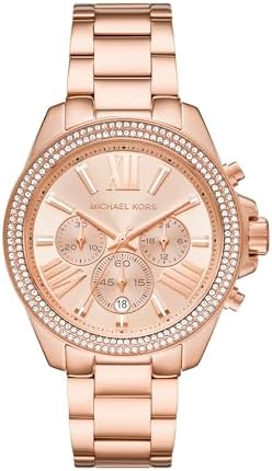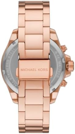 Michael Kors is a world-renowned, award-winning designer of luxury accessories and ready-to-wear with an innate sense of glamour and an unfailing eye for timeless chic. Featuring a 42mm case, 20mm band width, scratch resistant mineral crystal, Quartz movement with chronograph analog display, imported. Round rose gold-tone stainless steel case, with a rose gold dial and pavé accents. Rose Gold, stainless steel bracelet with a secure deployant clasp closure. Water resistant up to 100m (330ft): Can be worn bathing, swimming or snorkeling and shallow diving; 10 ATM