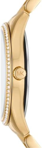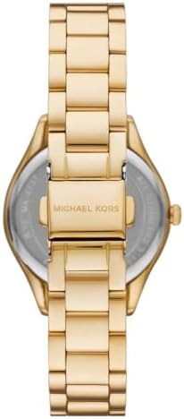 Brand Name Michael Kors Model number MK4737 Part Number MK4737 Item Shape Round Dial window material type Mineral Glass Clasp Deployment Clasp Case material Stainless Steel Case diameter 33 millimetres Case Thickness 11 millimetres Band Material Stainless Steel Band width 16 millimetres Band Color Gold Dial color Green Item weight 200 g Movement Quartz Display Type Analog