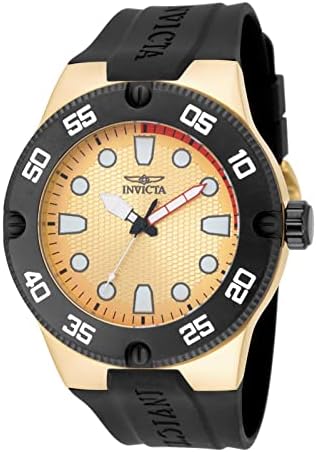 Gold textured dial with silver tone, red and white hands and black and white hour markers; luminous; black ion-plated stainless steel bezel; flame fusion crystal; 18k gold ion-plated stainless steel case; black silicone strap Japanese-quartz Movement Case Diameter: 52mm Water Resistant To 330 Feet