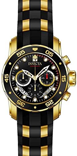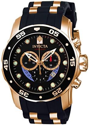 Brand Name Invicta Model number 6981 Part Number 6981 Item Shape Round Clasp Foldover Clasp Case diameter 48 millimetres Case Thickness 17 millimetres Band Material Stainless Steel Band width 5 millimetres Band Color two tone Dial color Black Special features Chronograph Item weight 39 g Movement Japanese Quartz Display Type Analog