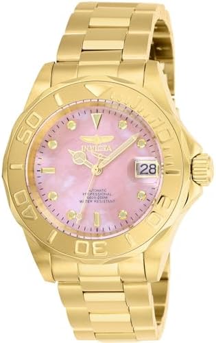 The Invicta 28693 has a 40 millimetres stainless steel case with a Pink dial.This model is powered by an accurate Automatic movement.20 bar water pressure resistant.This model is part of the Invicta Pro Diver collection.