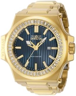 The Invicta 43387 has a 58 mm stainless steel case with a blue dial. Precise electronic quartz movement. 20 bar water resistance. From the Invicta Akula collection.