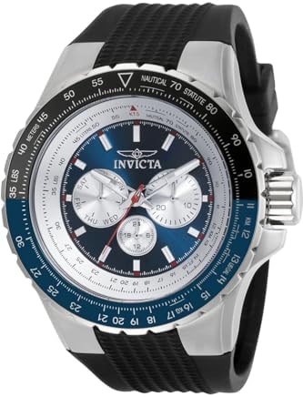 The Invicta 32916 has a 50 millimetres stainless steel case with a blue dial.This model is powered by an accurate Quartz movement.10 bar water pressure resistant.