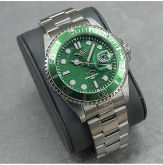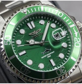 The Invicta 30020 has a 43 millimetres stainless steel case with a Green dial This model is powered by an accurate Quartz movement 10 bar water pressure resistant This model is part of the Invicta Pro Diver collection