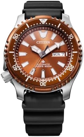 From its debut in 1989, the PROMASTER professional sports watch has been a firm favourite with professionals who challenge their limits. Functionality enabled by innovative technology. Durability suited for extreme environments. Carefully thought-through safety for all users. Go deeper, go higher, go further. FUGU LIMITED EDITION: This limited-edition watch harkens to the heritage of the Citizen original 1989 diving watch. The watch features a copper-brown toned dial with silver toned highlights, luminescent hands and markers as well as a day/date window. The standout feature on this watch is the matching copper toned rotating bezel with serrated edges, inspired by the Japanese pufferfish ‘FUGU’, the likeness of which is engraved on the case back. The case of this watch measures 42mm and is made from stainless-steel, as is the matching band. This watch comes with an additional black silicone band and comes in a limited-edition diver’s tank box.