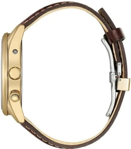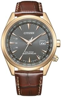 ECO-DRIVE - Eco-Drive is a 40-year-old core technology from CITIZEN that generates power even in dim light, allowing watches to run for over six months even in the dark. This Analogue watch has a calendar function: Date , Solar Powered , Radio Controlled , Luminous Hands and Worldtime High quality 21 cm length and 21 mm width Brown Leather strap with a Deployment clasp Case diameter: 42 mm,case thickness: 10 mm, case colour: Gold and dial colour: Grey Water resistant: 10 bars-Weight: 80 g