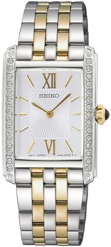 Seiko SWR093P1 Women's Quartz Watch with Stainless Steel Strap. Stainless steel casing: the stainless steel case is robust and gives the watch an elegant, silver-coloured shine. High-quality stainless steel strap: the high-quality stainless steel bracelet with its flat folding clasp with safety pusher ensures maximum comfort on the wrist. Scratch-resistant, curved hardlex glass: the specially hardened Hardlex mineral glass is much more resistant to scratches and bumps than conventional mineral glass. Waterproof wristwatch: the watch is waterproof up to 3 bar, i.e. at a depth of up to 30 metres. It can therefore easily withstand accidental water splashes when washing hands, rain or sweat. Diameter: 22.70 x 7.18 mm