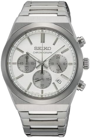 Seiko SSB451P1 Men's Analogue Quartz Watch with Stainless Steel Strap. STAINLESS STEEL CASE: The stainless steel case is robust and gives the watch an elegant, silver-colored shine OPTIMUM-QUALITY STAINLESS STEEL BRACELET: The high-quality stainless steel bracelet ensures maximum wrist comfort with its flat folding clasp with safety button SCRATCH-RESISTANT SAPPHIRE GLASS: The valuable, artificially produced sapphire glass has a hardness that is only exceeded by diamonds; sapphire glass is therefore less sensitive to impact than mineral glass and scratch-resistant WATERPROOF WRISTWATCH: The watch is waterproof up to 10 BAR, i.e; at a depth of up to 100 meters; it can therefore easily withstand accidental splashes of water when washing hands, rain or sweat Ø 43.00 x 11.60 mm