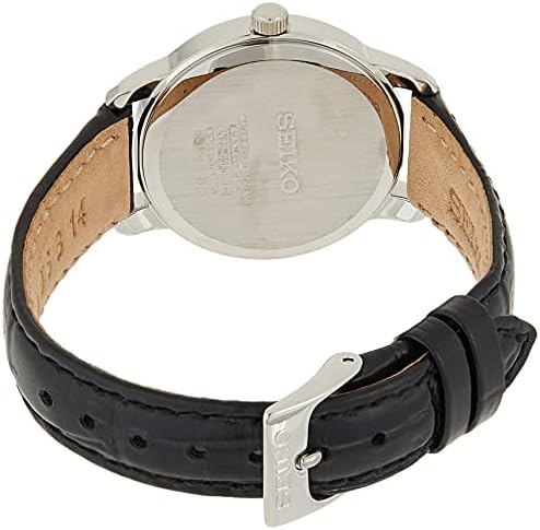 The SUR659 by Seiko is a timeless piece for those who value the little luxuries in life This watch is handcrafted with a sleek calf skin band and stainless steel case These durable materials guarantee longevity of the product and a proud owner in the years to come The black band silver dial and silver hands contribute to the overall appearance of the watch by adding a sophisticated aspect This piece also features a sturdy hardlex crystal to protect the dial and a japanese quartz movement to ensure you remain punctual in your daily life In addition this product is water-resistant to 50 meters 165 feet 5 atm which is ideal for those days where an accident may occur The rich details imperishable components and luxurious quality of the Seiko watch make it a perfect addition to any collection