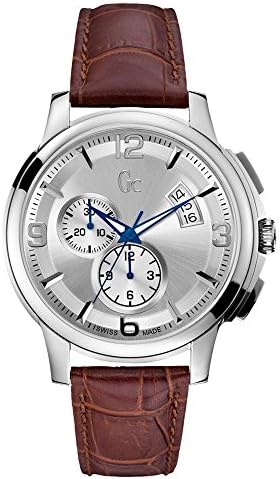 Gc mens watch. Silver stainless steel case Silver dial. Swiss Quartz movement. Deployment Buckle closure. Water resistance of 100 meters.