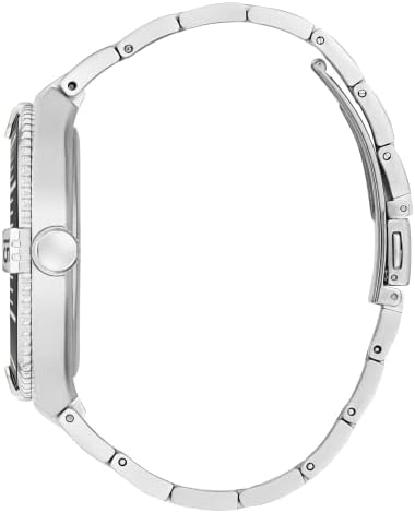Stainless steel five-link bracelet with pilot buckle closure Featuring an aluminum top ring and bubble date window 45MM stainless steel case with mineral glass crystal Water resistant to 30m (100ft): in general, withstands splashes or brief immersion in water, but not suitable for swimming or bathing