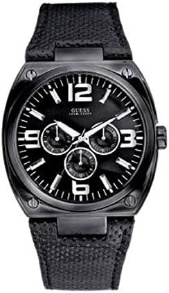 Brand Name GUESS Model number 95025G1 Part Number 95025G1 Item Shape Round Dial window material type Mineral Clasp Buckle Case material Stainless Steel Case diameter 46.00 Case Thickness 12 millimetres Band Material Leather Band width 23 millimetres Band Color Black Dial color Black Special features Chronograph Movement Quartz Display Type analogue