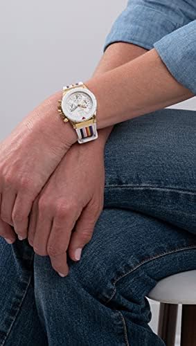 A part of the Worn with Pride collection. This dynamic sport look with its chrono-look multi-function movement is paired with a leather strap featuring the colors from the inclusive flag.**This style features a nylon top ring that is 45% bio-based**