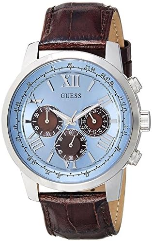 Brand Name GUESS Model number W0380G6 Part Number W0380G6 Item Shape Round Clasp Tang Buckle Case diameter 45 millimetres Case Thickness 10 millimetres Band Material Leather Band width 22 millimetres Band Color Brown Dial color Blue Special features Chronograph Item weight 400 g Display Type Chronograph