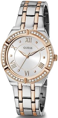 Brand Name GUESS Model number 091661535567 Part Number 091661535567 Item Shape Round Dial window material type Mineral Clasp Deployment Clasp Case material Stainless Steel Case diameter 35 Case Thickness 9.35 Band width 15 millimetres Band Color Rose Gold Dial color Silver Item weight 320 g Movement Quartz Display Type Analog