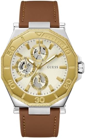 Guess is one of the leading fashion brands worldwide, known for its iconic style and innovative design. Since its inception, GUESS has enjoyed great popularity and has become a symbol of fashionable luxury. Whether traditional, modern, classic or sporty, GUESS watches offer you all the possibilities to find a watch for you. Item description: - GUESS men's watch Prime leather. - Case diameter: approx. 46 mm (without crown). - Case height: approx. 11.7 mm. - Stainless steel case/shape of the housing: round. - Display: hour, minute and seconds, date display. - Hardened flat mineral glass. - Weight: approx. 113 g. - Water resistant (5 bar test pressure according to DIN standard 8310). - High-quality quartz movement. - Leather strap with pin buckle. - Strap width: 24 mm. - Strap length: men's standard. Box contents: - GUESS men's watch Prime leather. - GUESS gift box