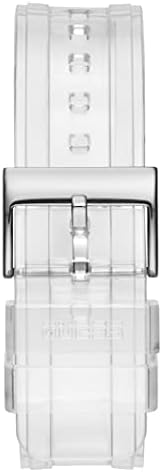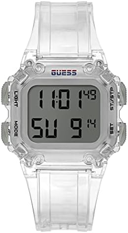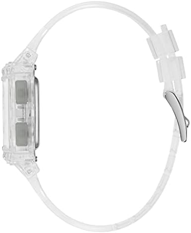 Clear textured and comfortable silicone strap with buckle closure Featuring a sleek digital dial Square transparent case 38.5MM Polycarbonate case with mineral glass crystal Water resistant to 50 meters (165 feet): In general, suitable for short periods of recreational swimming, but not diving or snorkeling