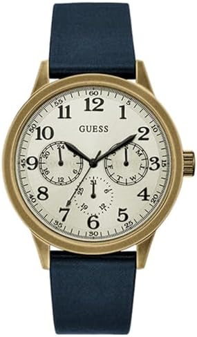 If you like to follow the latest trends in fashion and accessories, buy Unisex Watch Guess W1101G2 (Ø 46 mm) at the best price. Strap colour: blue. Dial colour: white. Strap material: leather. Clasp Type: Buckle Waterproof: 5 ATM. Glass: Mineral Box contents: Includes branded case. Movement Type: Quartz Watch Case Color: Gold Watch Case Material: Stainless Steel Watch case diameter: Ø 46 mm Extra links: No Gender:Unisex