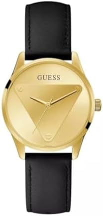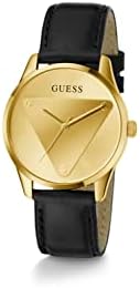 GUESS Ladies Watch Emblem 36mm Iconic Triangle Logo on Dial Leather Strap GW0399L1, Strap.