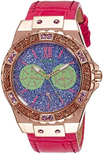 Pink bracelet Leather bracelet Analogue Water-resistant to 5 bars Multicolour dial