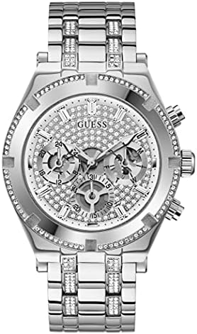 Guess Men's Analog Watch Silver round dial with quartz movement With mineral glass Stainless steel strap in silver color Water resistant to 5 bars