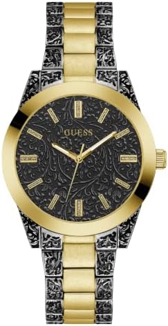 A unique statement piece with an elegantly designed brocade pattern etched on both the watch and dial with the added pop of gold-tone indices