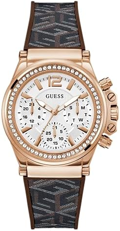 Specifications of Guess Women's 38mm Watch - Red Strap White Dial Gold Tone Case