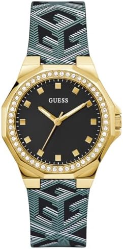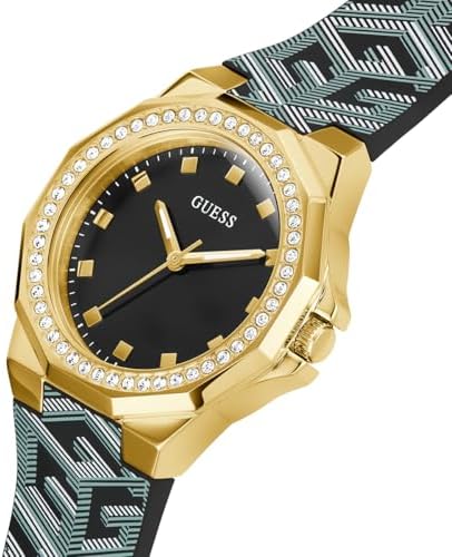 Specifications of Guess Women's 38mm Watch - Black Strap Black Dial Gold Tone Case