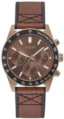 Brown smooth leather strap with contrast stitch details Brown multi-function dial with black accents Stainless steel coffee colored case 42MM stainless steel case with mineral glass crystal Water resistant to 50 meters (165 feet): In general, suitable for short periods of recreational swimming, but not diving or snorkeling -- -- -- Additional information -- -- -- -- -- Country of origin -- -- -- -- -- -- -- China