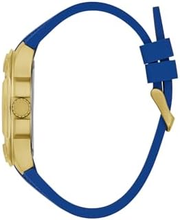 44mm gold-tone case 8 inch blue strap multi dial mineral glass lens Water resistant up to 50 meters
