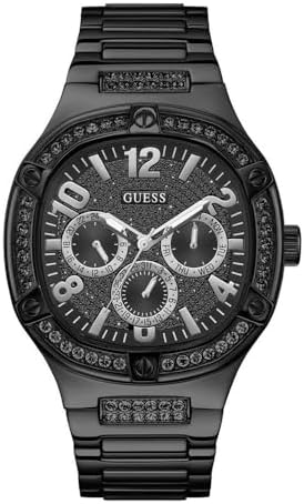 8 inch black strap 46mm black colored case GUESS Watches has stood the test of time, with an unwavering commitment to designing watches that not only keep pace with fashion, but also set the standard for it. We are The Authority in fashion-forward timekeeping for those who demand sophistication and statement styling in every moment.