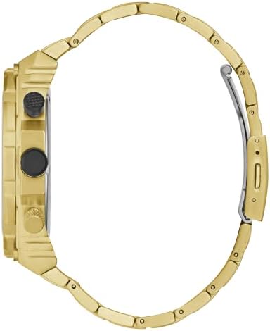 This fashionable and classic watch matches any outfit at any occasion,it adds style to your life . This Multi Dial watch has a calendar function: Day-Date , 24-hour Display and Luminous Hands High quality 21 cm length and 28 mm width Gold Stainless steel strap with a Fold over with push button clasp Case diameter: 50 mm,case thickness: 12 mm, case colour: Gold and dial colour: Gold Water resistant: 5 bars -Weight: 236 g