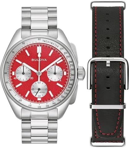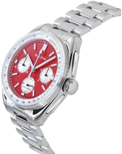 On August 2, 1971, a Bulova chronograph was worn on the moon, engineered by Bulova for the demands of the lunar environment. Now, the iconic design has been updated with the exclusive high precision quartz movement. Continuing Bulova’s legacy of precision timing with heritage-inspired design, the Lunar Pilot chronograph from the Archive Series features a unique dial that reinforces the spacefaring history, and the 43.5mm silver-tone 316L stainless steel polished case, creating a dynamic presence on the wrist. Slim chronograph pushers and a crown featuring the Bulova tuning fork logo are perfectly proportioned and ideally positioned at 3 o’clock. Under the flat sapphire crystal, the six-hand chronograph dial is presented in a unique red and silver “panda” style, with a vibrant red inspired by the tone of the moon during a total lunar eclipse, sometimes referred to as a “blood moon.” A silver-white tachymeter ring offers contrast around the dial, which features a retro Bulova logo.