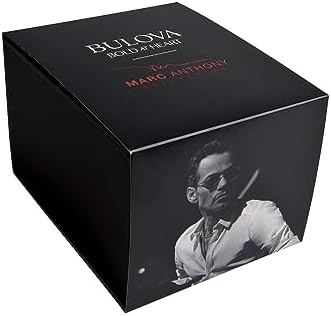 Capturing the bold style of Marc Anthony, one of music's most influential artists, Bulova presents Marc Anthony's all-new A-series. The bold, angular silver stainless steel case features a brushed finish with polished accents, a silver bezel with grey accents, a flat mineral crystal, and a screwed crown. The incredibly vivid blue dial combines a sunray texture along the hour track and a central dial with a radiant sunburst finish, with luminescent treated hands, polished indexes and a grey seconds subdial. The dial is accented by diamond hour markers at 1, 3 and 5 o'clock, chosen by Mark for their personal significance. Visible from both the dial opening and an exhibition case back, the automatic open heartbeat movement features 21 jewels and a 42-hour power reserve. The 44mm watch has a water resistance of 200m and is complemented by a matching silver stainless steel strap with a push-button fold-over clasp. Combining Marc Anthony's iconic music with Bulova exclusive technology and Bold at Heart spirit, this new men's watch will always keep you up to the rhythm of style.