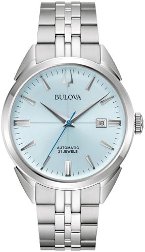 CLASSIC DESIGN The Bulova Sutton Automatic men's watch combines timeless style with modern functionality - ideal for the discerning gentleman HIGH QUALITY STAINLESS STEEL STRAP: the silver stainless steel bracelet gives the watch an elegant, durable finish 41.5mm Case Diameter: Perfectly proportioned case fits perfectly on the wrist and provides a striking presence Automatic Movement: precise and reliable, the movement winds itself by movement and requires no battery change Water resistant to 3 bar: protection against splashes of water and therefore ideal for everyday use and light outdoor activities