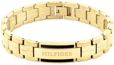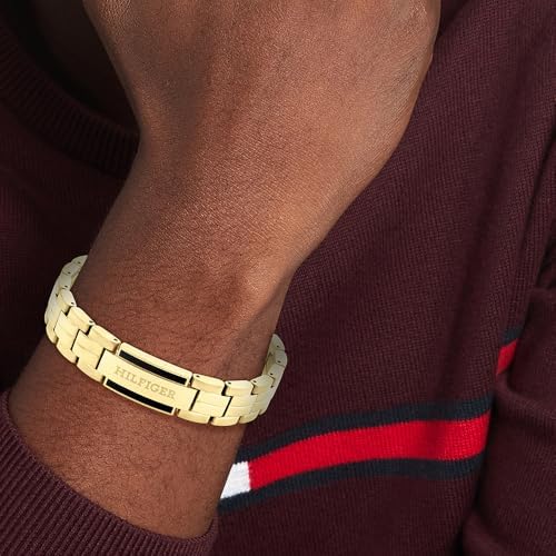 Metal bracelet inspired by tommy hilfiger watches: enhance your style with this sleek metal bracelet, reflecting the iconic design of tommy hilfiger watches; ideal for adding a touch of elegance to any outfit Stainless steel bracelet with yellow gold ion plating and tommy hilfiger iconic blue enamel detail: made from stainless steel with yellow gold ion plating, this bracelet merges luxury with durability; the iconic blue enamel detail introduces a sophisticated and contemporary accent to the design Adjustable fit for all sizes: this bracelet by tommy hilfiger measures 190mm in length and features a design similar to a watch, allowing for easy resizing to ensure a ideal fit for any wrist Signature hilfiger logo engraving: each piece in this collection features the iconic hilfiger logo elegantly engraved, adding a touch of authenticity and brand distinction; this subtle yet sophisticated detail enhances the overall design, showcasing your appreciation for timeless style and premium craftsmanship Secure fold-over closure: designed for durability and convenience, this bracelet features a secure fold-over closure that ensures a snug fit and easy fastening