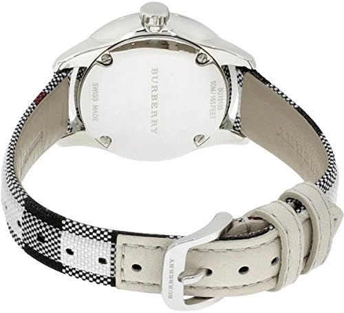 Brand Name BURBERRY Model number bu10103 Part Number bu10103 Item Shape Round Case material Stainless Steel Case diameter 32 millimetres Case Thickness 7 millimetres Band Material Fabric Band width 14 millimetres Band Color Multicolour Dial color White Special features Second Hand Movement Quartz Display Type Analog