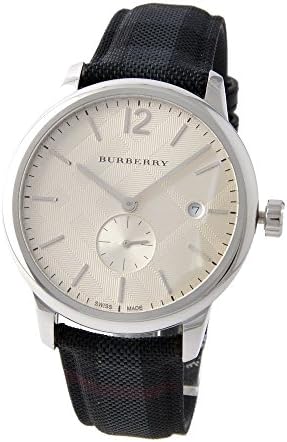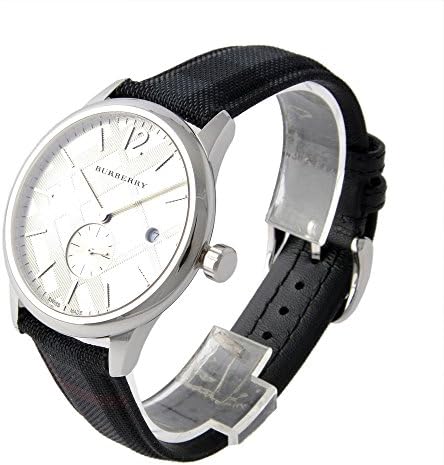 Brand Name BURBERRY Model number #BU10008 Part Number #BU10008 Item Shape Round Case diameter 40 millimetres Case Thickness 9 millimetres Band Material Fabric: Nylon Band width 20 Band Color Gold Dial color Gold Special features Second Hand Movement Quartz