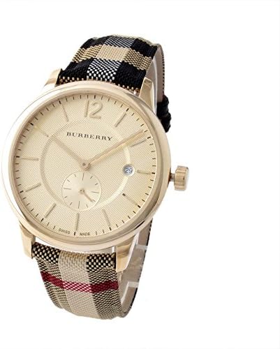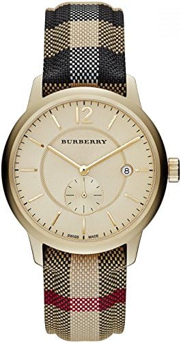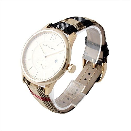 Brand Name BURBERRY Model number #BU10001 Part Number #BU10001 Item Shape Round Clasp Tang Buckle Case diameter 40 millimetres Case Thickness 8.5 Band Material Leather Band width 20 Band Color mutil Dial color Gold Special features Second Hand Movement Quartz Display Type Analog