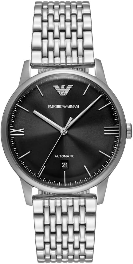 Specifications of Emporio Armani Men's Silver-Tone Stainless Steel Watch and Leather Bracelet, Set