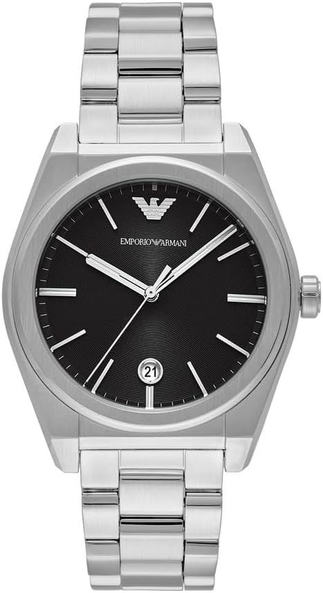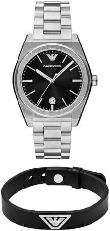 Specifications of Emporio Armani Men's Silver-Tone Stainless Steel Watch and Leather Bracelet, Set