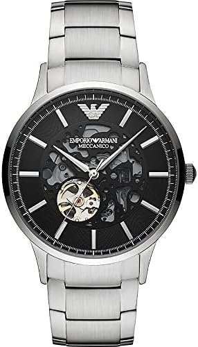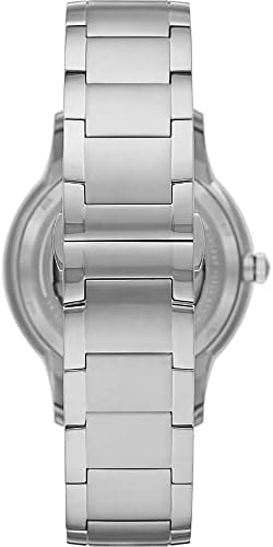 43mm case, 22mm band width, mineral crystal, Automatic movement with 3-hand analog display, imported. Round stainless steel case, with a black dial. Silver, stainless steel bracelet. Water resistant up to 50m: Wearable while swimming in shallow water.