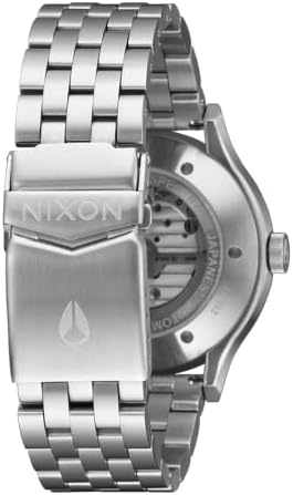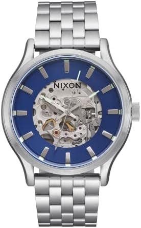 The Spectra moves skilfully between the challenge of tradition and the tribute to classic watchmaking Your 21 jewelled automatic movement is accentuated by the spectacular transparent skeleton dial further underlined by distinctive indices and the Nixon signature that seems to float above everything. A see-through yet solid design. The solid stainless steel case with viewing window is 100 m/10 ATM waterproof. A slightly curved crystal glass and a screwed case back ensure maximum integrity. The custom-made, solid stainless steel bracelet with five links and double folding clasp offers maximum safety even when used actively Premium Miyota 82S0 with twenty-one gemstones, three hands and Japanese automatic movement The automatic movement via a multi-directional tungsten flywheel winding system with a power reserve of more than 40 hours.